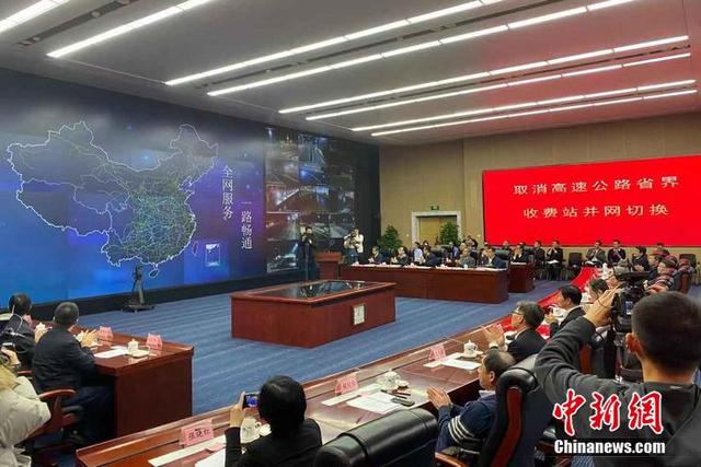 交通運(yùn)輸部舉行的“取消高速公路省界收費(fèi)站工程并網(wǎng)切換儀式”現(xiàn)場。 程春雨 攝