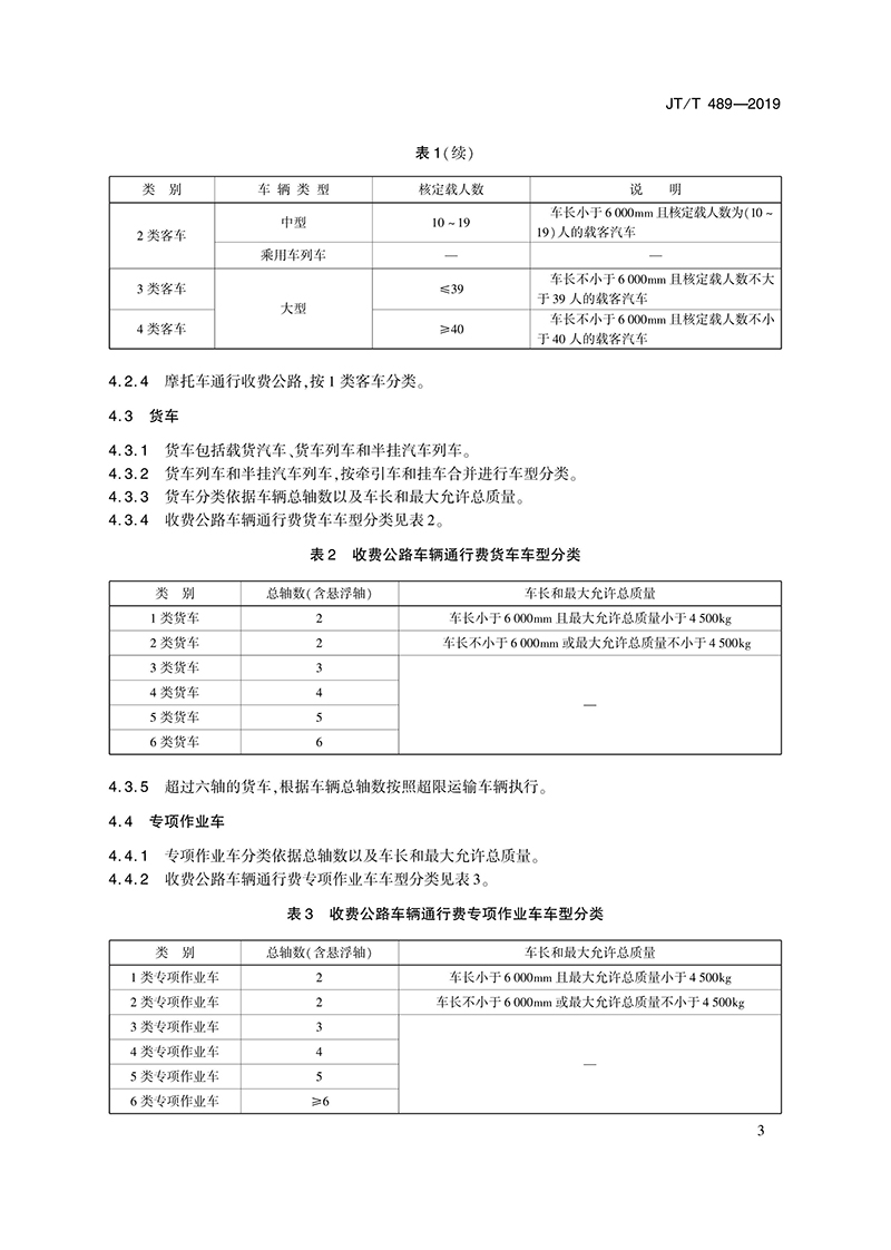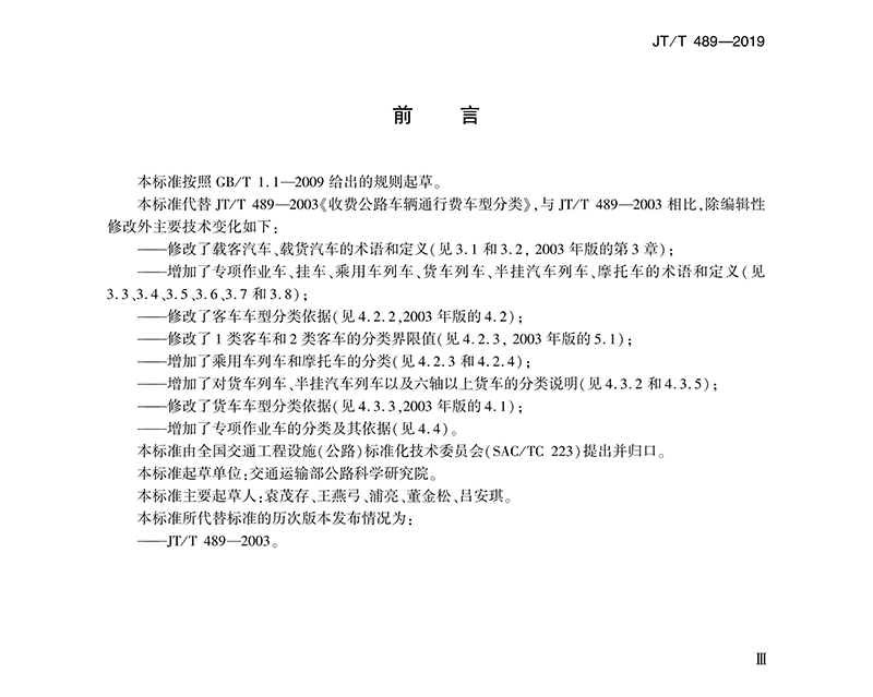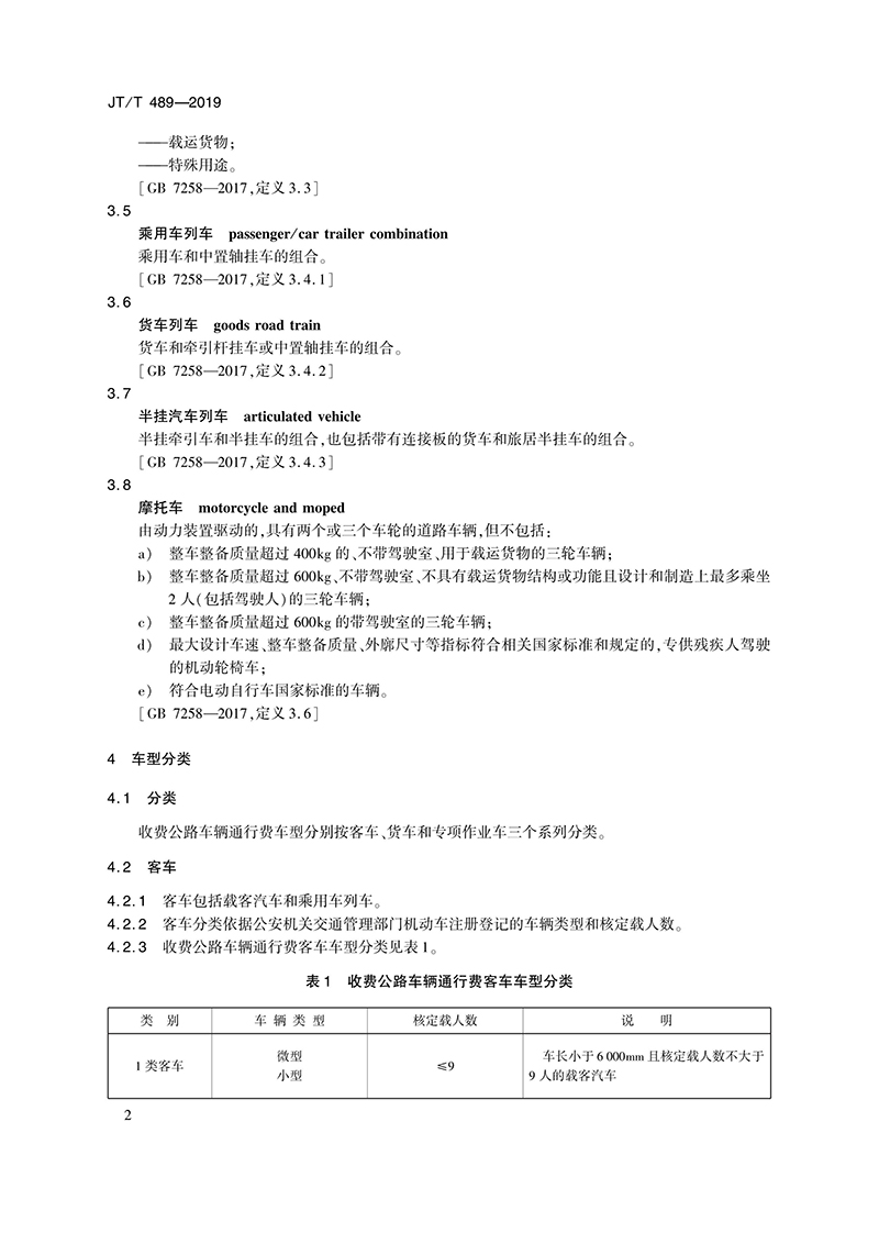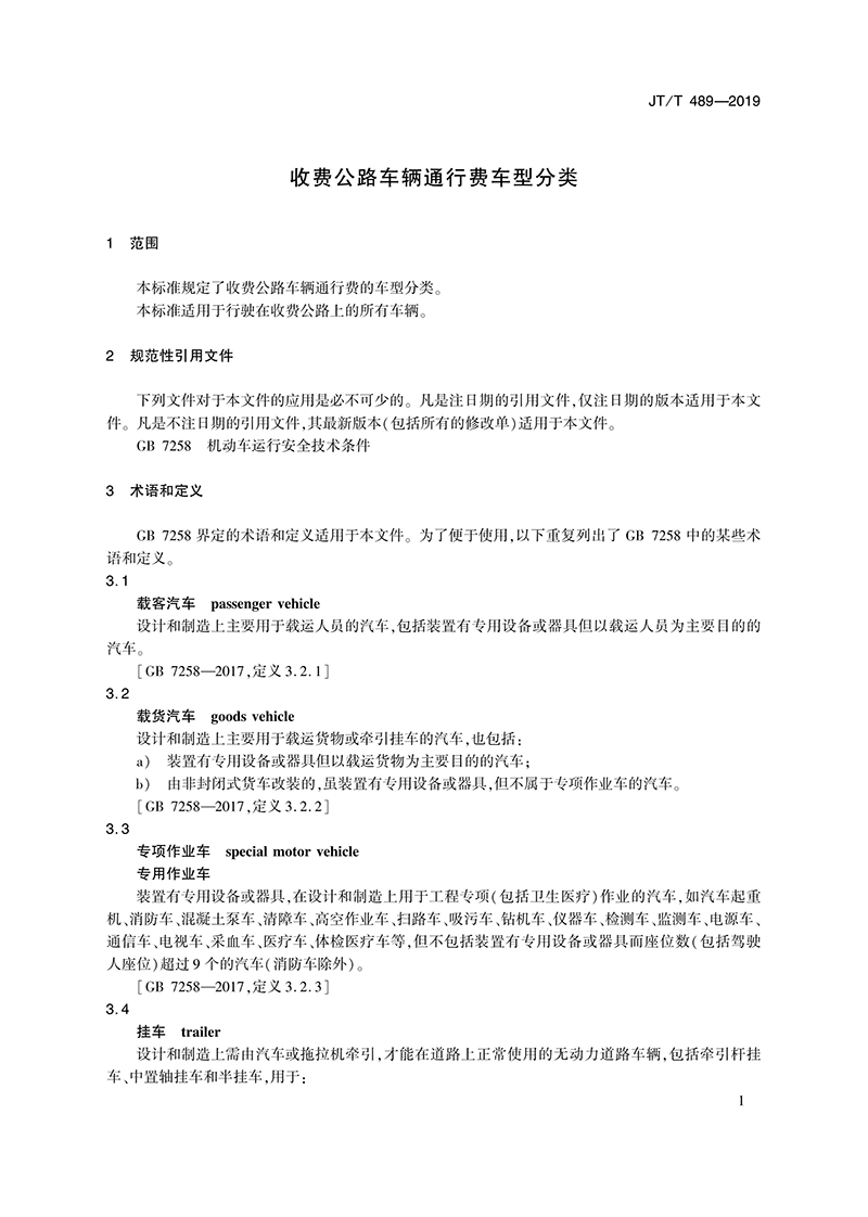 交通運(yùn)輸行業(yè)標(biāo)準(zhǔn)《收費(fèi)公路車輛通行費(fèi)車型分類》 JT/T 489-2019