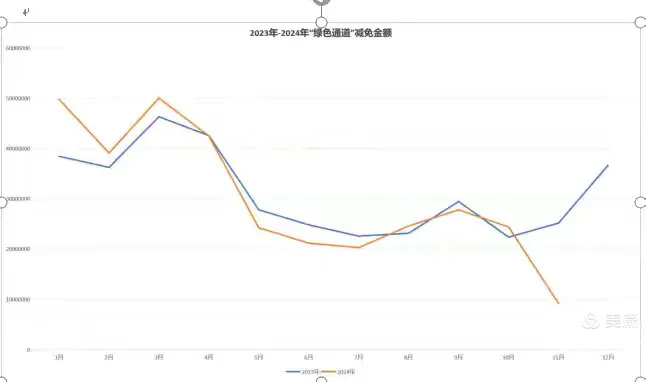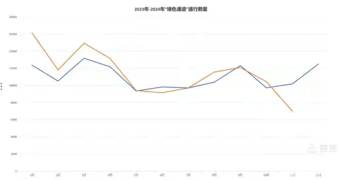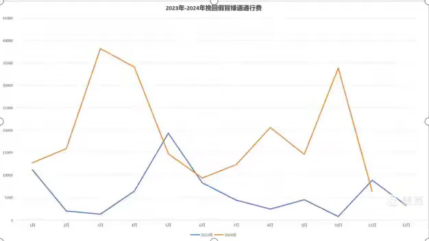 2023 年綠通數(shù)量共 132222 輛,免費金額 375834942.22 元。2024年截至 11 月 20 日,綠通數(shù)量共 125346 輛,免費金額 333207518.57元。數(shù)據(jù)按月度展開如圖:
